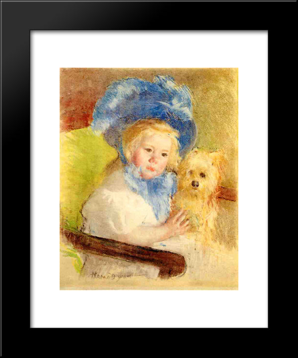 Simone In A Large Plumed Hat, Seated, Holding A Griffon Dog 20x24 Black Modern Wood Framed Art Print Poster by Cassatt, Mary