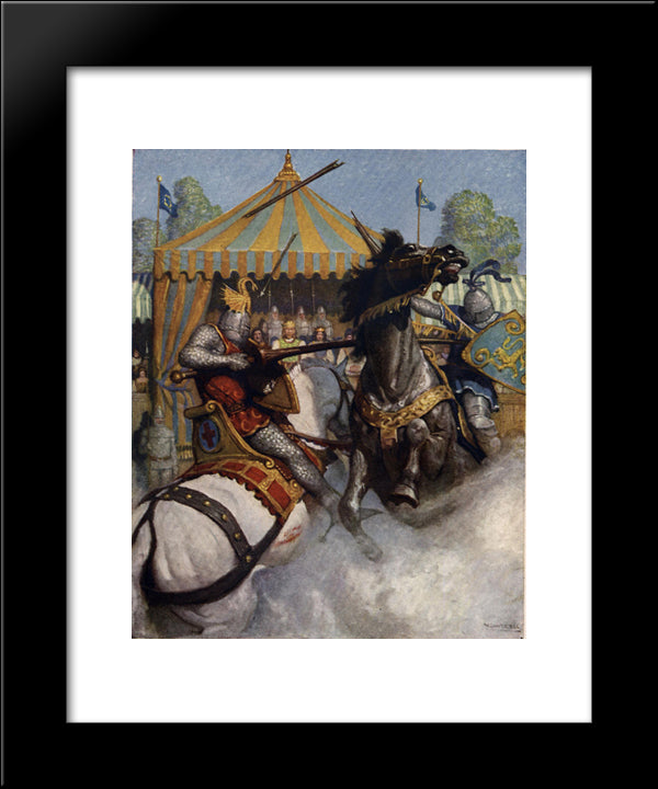 Sir Mador'S Spear Brake All To Pieces, But The Other'S Spear Held 20x24 Black Modern Wood Framed Art Print Poster by Wyeth, N.C.