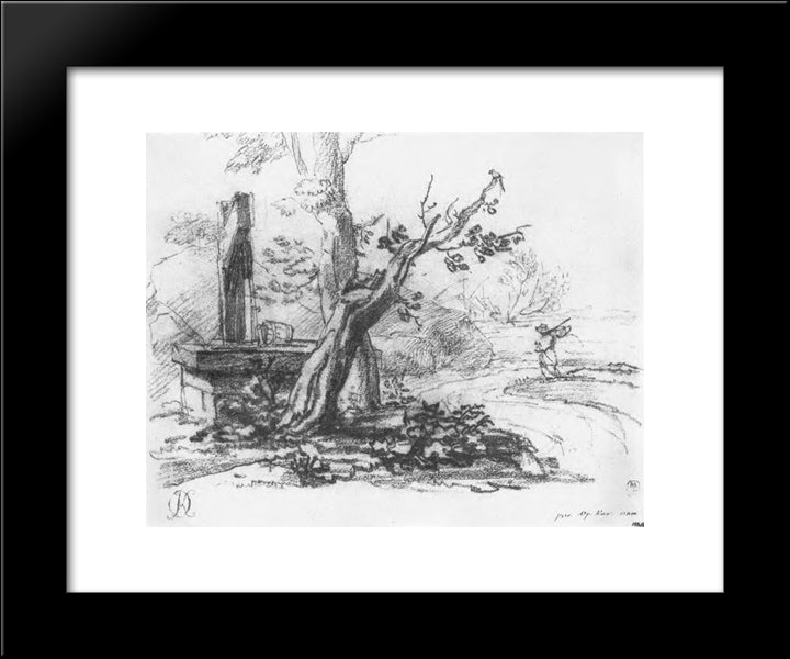 Landscape With A Well 20x24 Black Modern Wood Framed Art Print Poster by Kiprensky, Orest