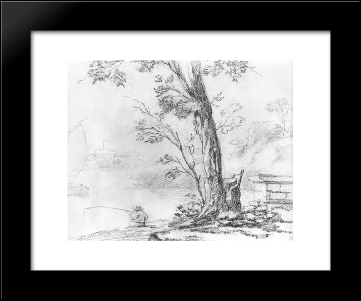 Landscape With Fisherman 20x24 Black Modern Wood Framed Art Print Poster by Kiprensky, Orest