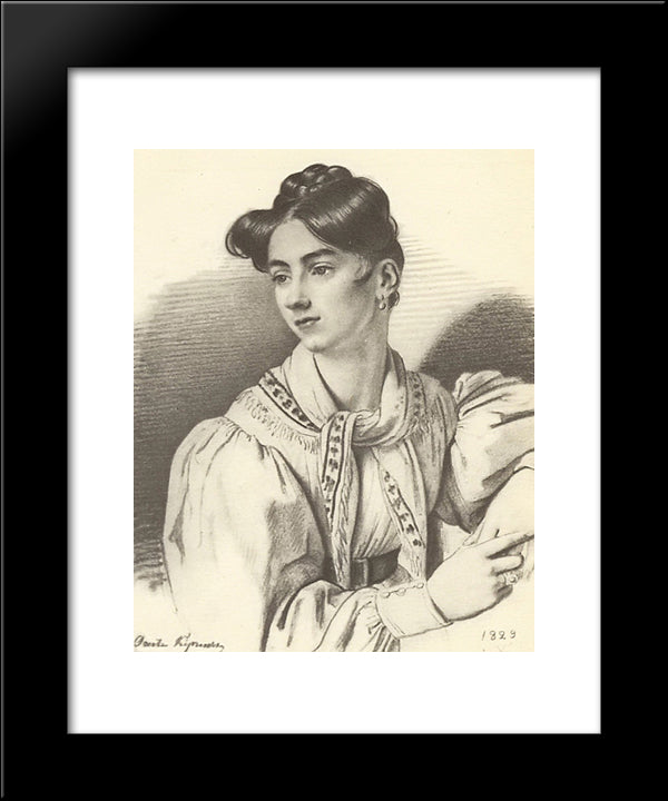 Portrait Of An Unknown Woman With A Kerchief On Her Neck 20x24 Black Modern Wood Framed Art Print Poster by Kiprensky, Orest