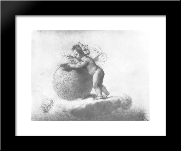 Putto With A Globe 20x24 Black Modern Wood Framed Art Print Poster by Kiprensky, Orest