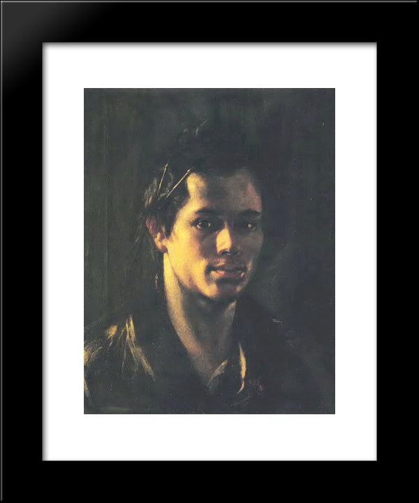 Self-Portrait With Brushes Behind The Ear 20x24 Black Modern Wood Framed Art Print Poster by Kiprensky, Orest