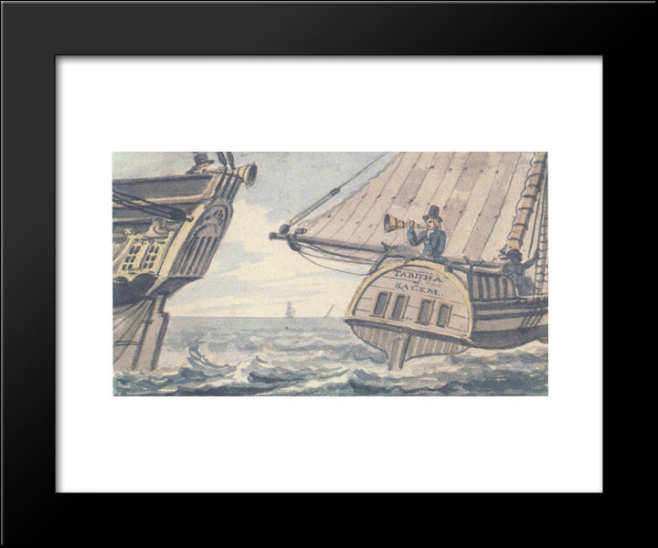Meeting Of Two Ships In The Sea 20x24 Black Modern Wood Framed Art Print Poster by Svinyin, Pavel