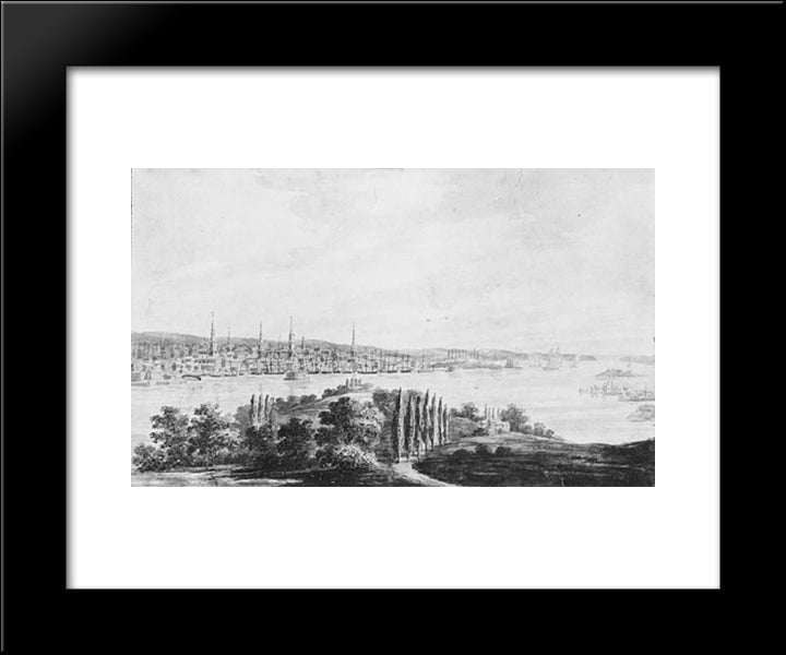 New York City And Harbor From Weehawken 20x24 Black Modern Wood Framed Art Print Poster by Svinyin, Pavel