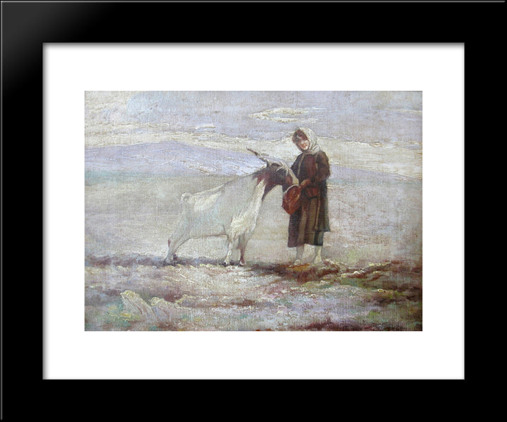 The Girl And The Goat 20x24 Black Modern Wood Framed Art Print Poster by Lembesis, Polychronis