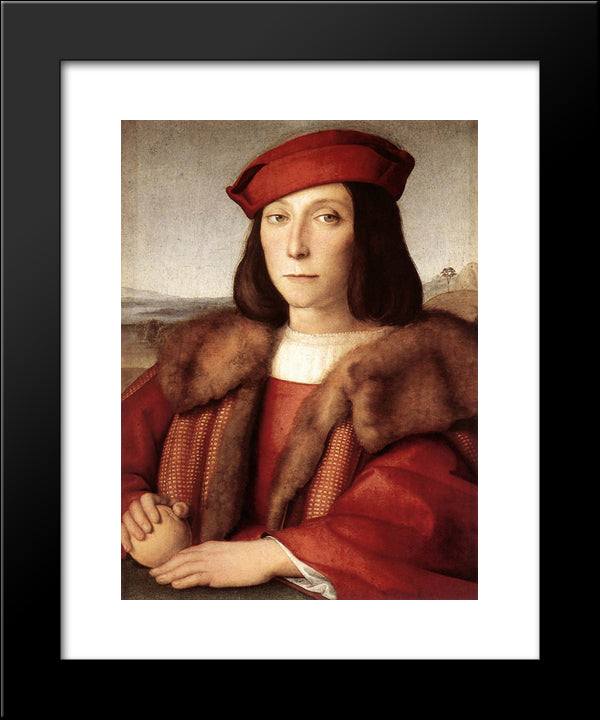 Portrait Of A Man Holding An Apple 20x24 Black Modern Wood Framed Art Print Poster by Raphael