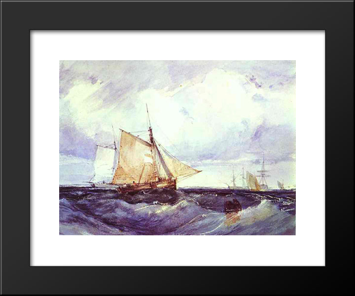 A Cutter And Other Ships In A Strong Breeze 20x24 Black Modern Wood Framed Art Print Poster by Bonington, Richard Parkes