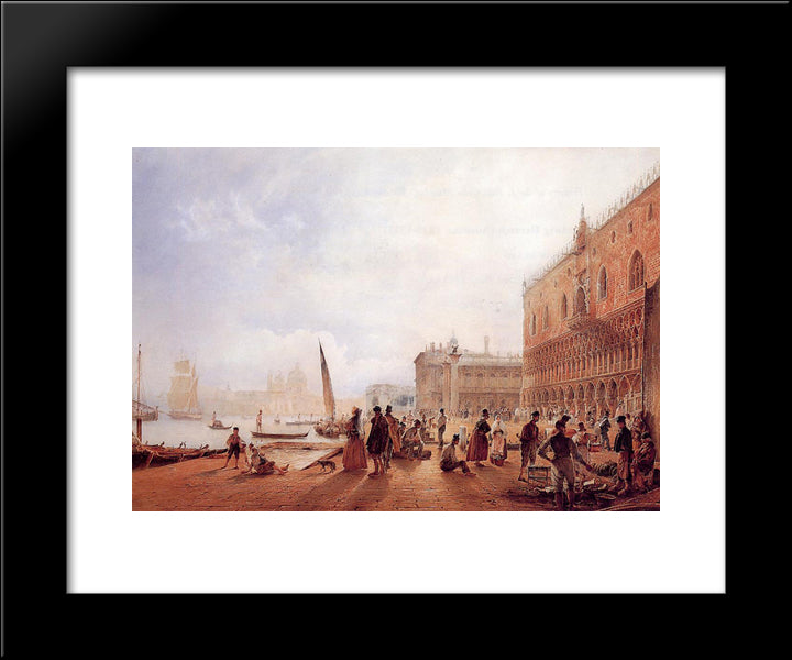 Figures On The Riva Degli Schiavone 20x24 Black Modern Wood Framed Art Print Poster by Alt, Rudolf von