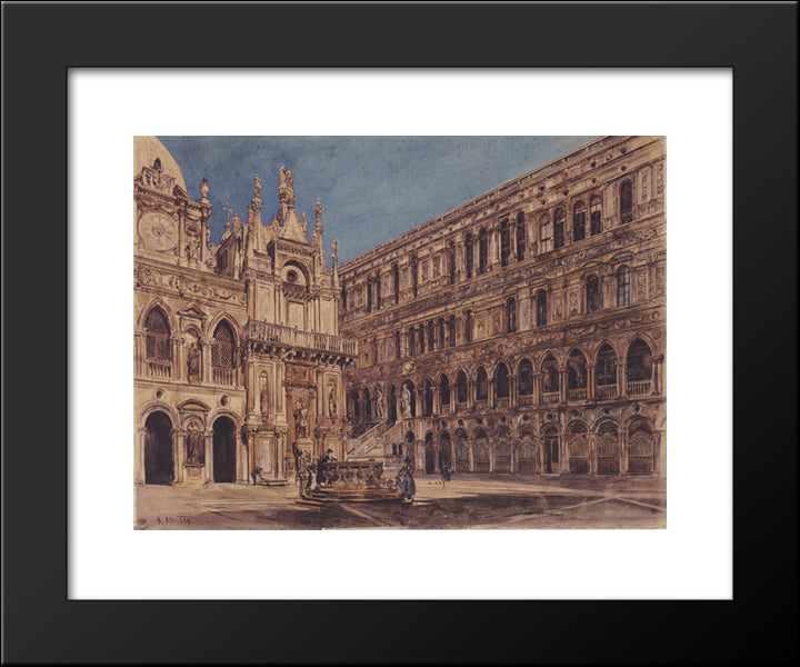 The Courtyard Of The Doge'S Palace In Venice 20x24 Black Modern Wood Framed Art Print Poster by Alt, Rudolf von