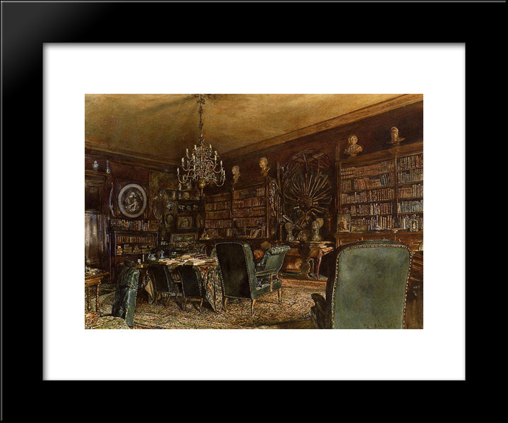 The Library Of The Palais Lanckoronski, Vienna 20x24 Black Modern Wood Framed Art Print Poster by Alt, Rudolf von