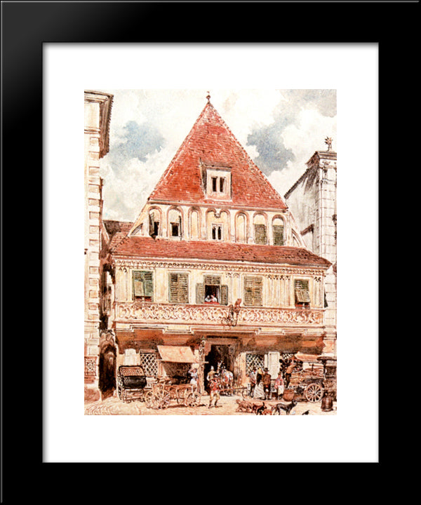 Watercolour Of Steyr Bummerlhaus 20x24 Black Modern Wood Framed Art Print Poster by Alt, Rudolf von
