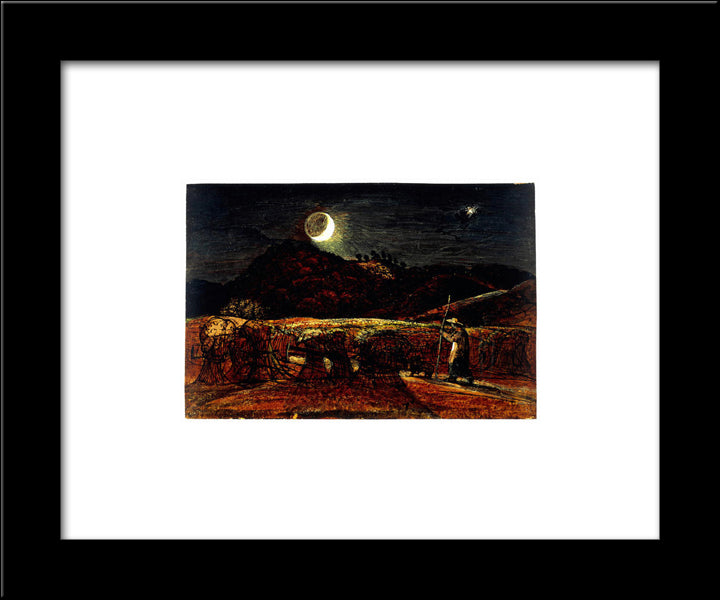 A Cornfield By Moonlight With The Evening Star 20x24 Black Modern Wood Framed Art Print Poster by Palmer, Samuel