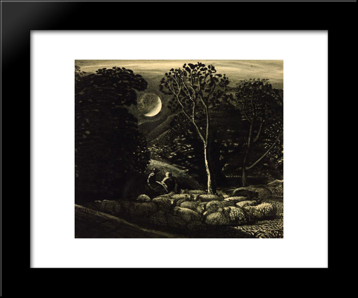 Moonlight, A Landscape With Sheep 20x24 Black Modern Wood Framed Art Print Poster by Palmer, Samuel