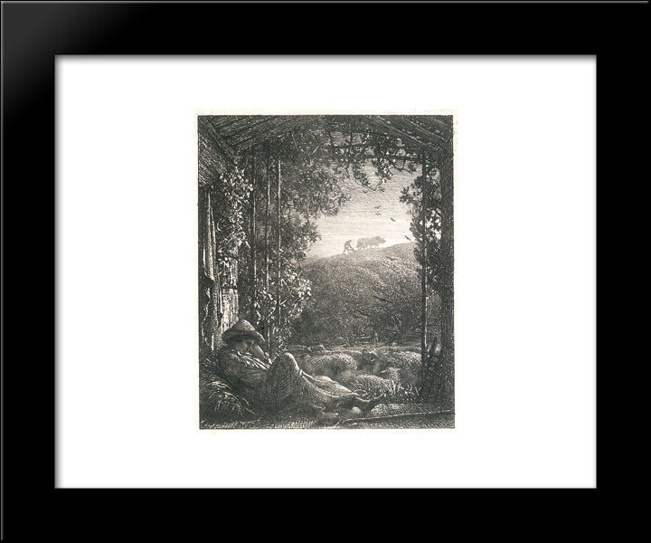The Sleeping Shepherd - Early Morning 20x24 Black Modern Wood Framed Art Print Poster by Palmer, Samuel