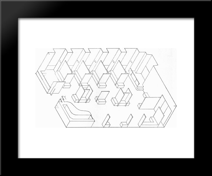 Interior Of The Cafe Brasserie Of The Aubette, Strasbourg, Axonometry 20x24 Black Modern Wood Framed Art Print Poster by Doesburg, Theo van