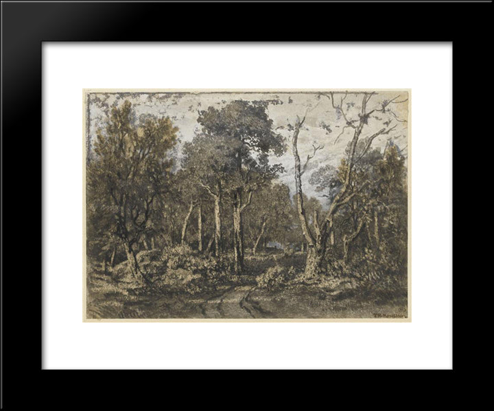 The Oak Tree Crashed Into The Forest Of Fontainebleau 20x24 Black Modern Wood Framed Art Print Poster by Rousseau, Theodore