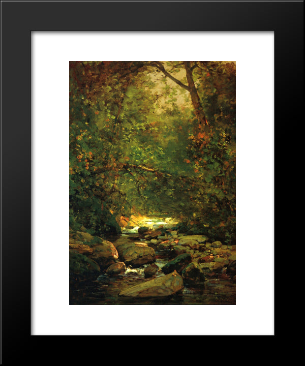 Stream In Forest Winter 20x24 Black Modern Wood Framed Art Print Poster by Hill, Thomas