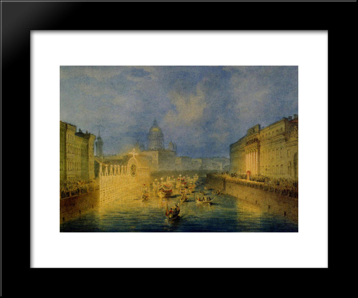 Illumination On The Moika Embankment In St. Petersburg 20x24 Black Modern Wood Framed Art Print Poster by Sadovnikov, Vasily