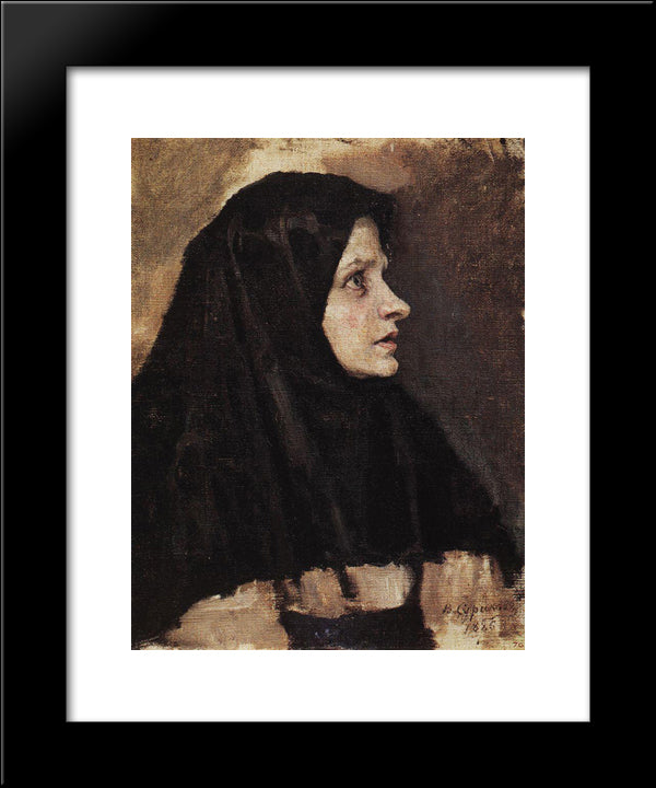 Head Of A Woman In Black Shawl 20x24 Black Modern Wood Framed Art Print Poster by Surikov, Vasily