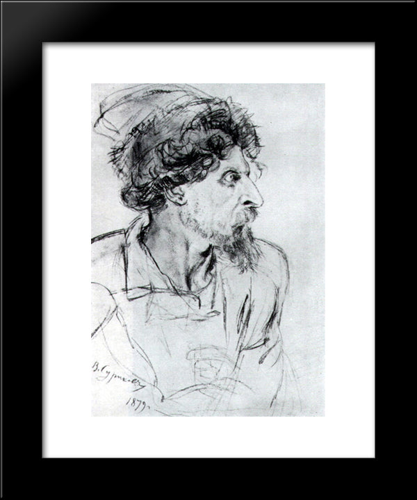 Head Of Cossack 20x24 Black Modern Wood Framed Art Print Poster by Surikov, Vasily