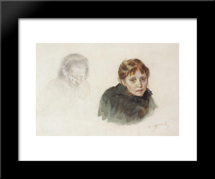 Head Of Girl 20x24 Black Modern Wood Framed Art Print Poster by Surikov, Vasily