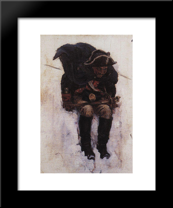 Soldier Descending From The Snowy Mountain 20x24 Black Modern Wood Framed Art Print Poster by Surikov, Vasily