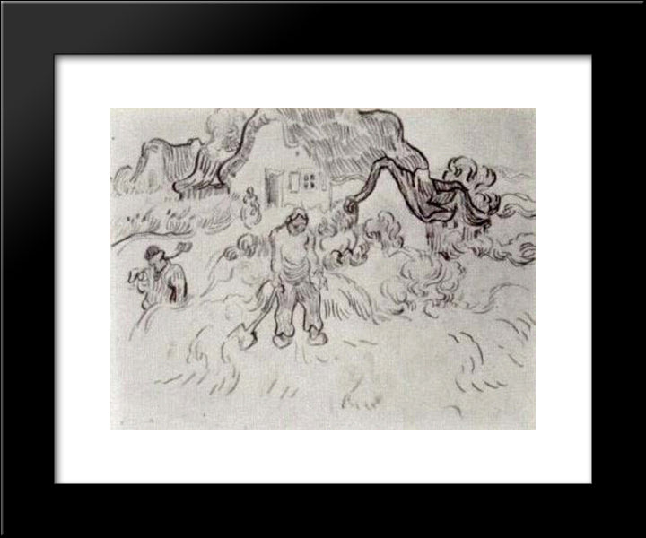 Cottages With Three Figures 20x24 Black Modern Wood Framed Art Print Poster by Van Gogh, Vincent