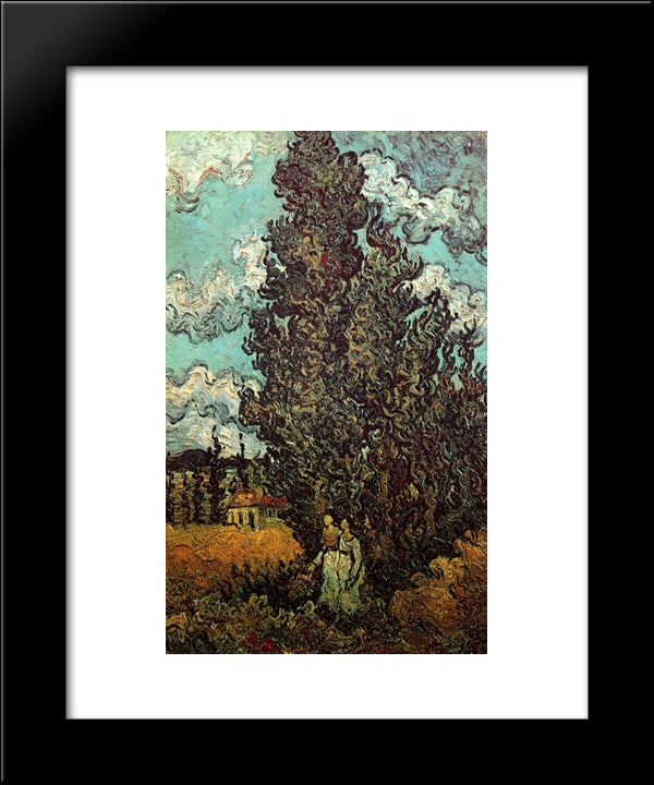 Cypresses And Two Women 20x24 Black Modern Wood Framed Art Print Poster by Van Gogh, Vincent