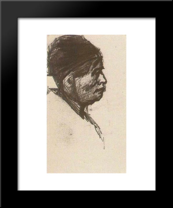 Head Of A Man With Cap 20x24 Black Modern Wood Framed Art Print Poster by Van Gogh, Vincent