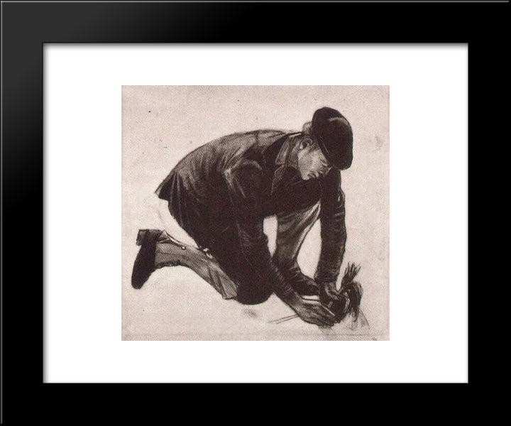 Kneeling Man, Planting 20x24 Black Modern Wood Framed Art Print Poster by Van Gogh, Vincent