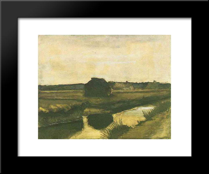 Landscape With A Stack Of Peat And Farmhouses 20x24 Black Modern Wood Framed Art Print Poster by Van Gogh, Vincent