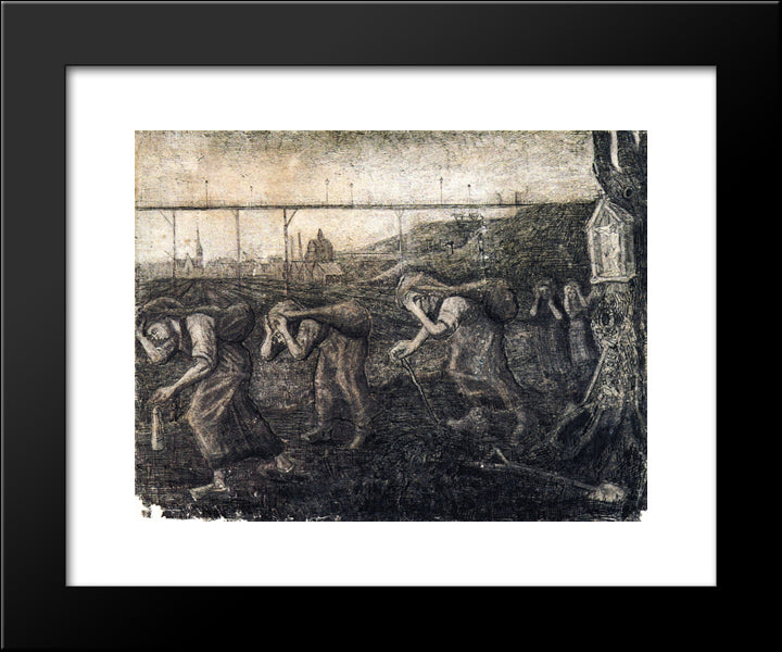 Miners Women Carrying Sacks (The Bearers Of The Burden) 20x24 Black Modern Wood Framed Art Print Poster by Van Gogh, Vincent
