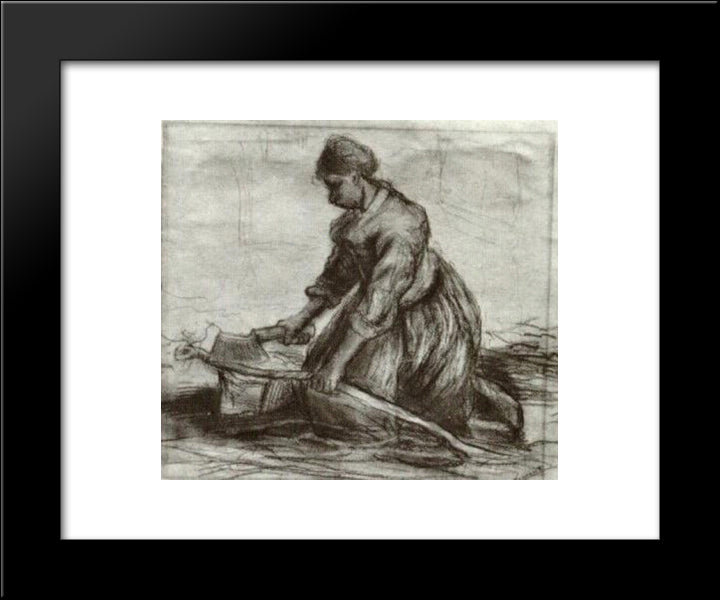 Peasant Woman, Kneeling With Chopper 20x24 Black Modern Wood Framed Art Print Poster by Van Gogh, Vincent