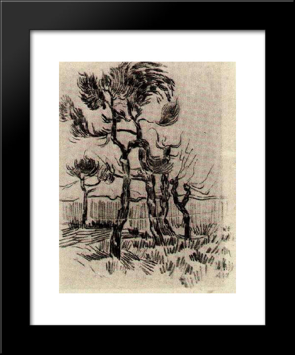 Pine Trees In Front Of The Wall Of The Asylum 4 20x24 Black Modern Wood Framed Art Print Poster by Van Gogh, Vincent