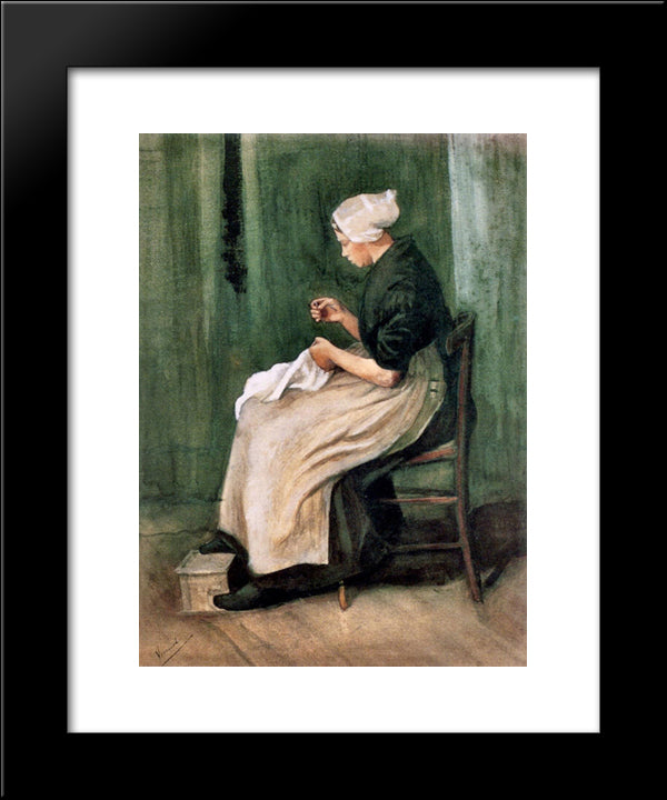 Scheveningen Woman Sewing 20x24 Black Modern Wood Framed Art Print Poster by Van Gogh, Vincent
