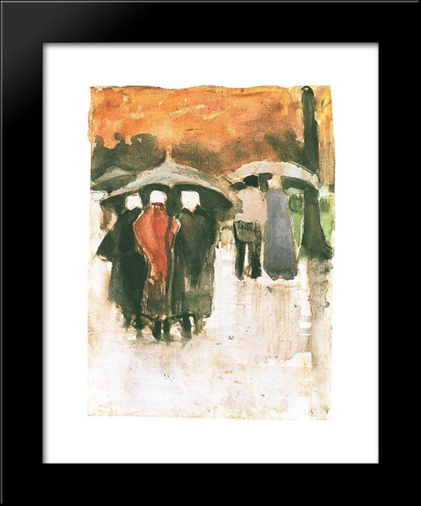 Scheveningen Women And Other People Under Umbrellas 20x24 Black Modern Wood Framed Art Print Poster by Van Gogh, Vincent