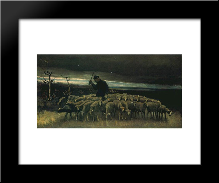 Shepherd With A Flock Of Sheep 20x24 Black Modern Wood Framed Art Print Poster by Van Gogh, Vincent