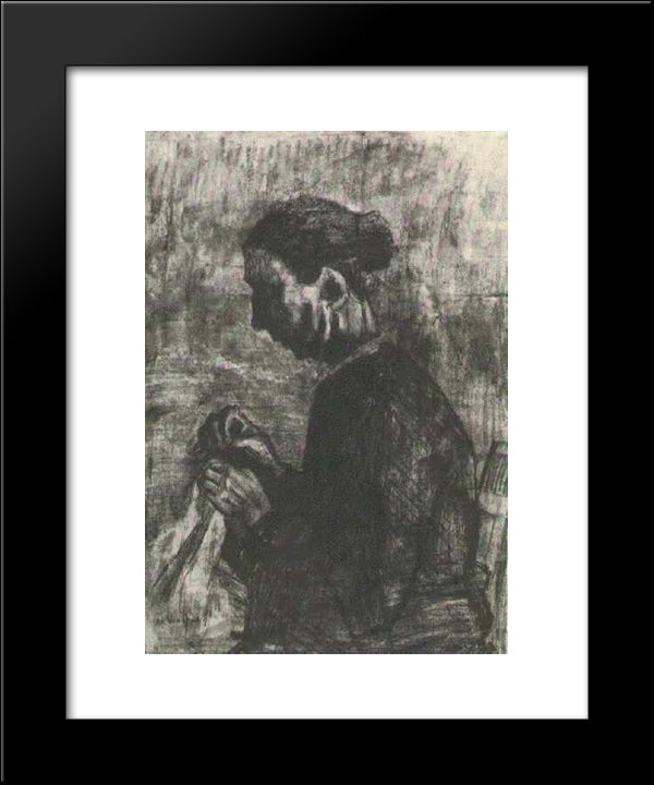 Sien, Sewing, Half-Figure 20x24 Black Modern Wood Framed Art Print Poster by Van Gogh, Vincent