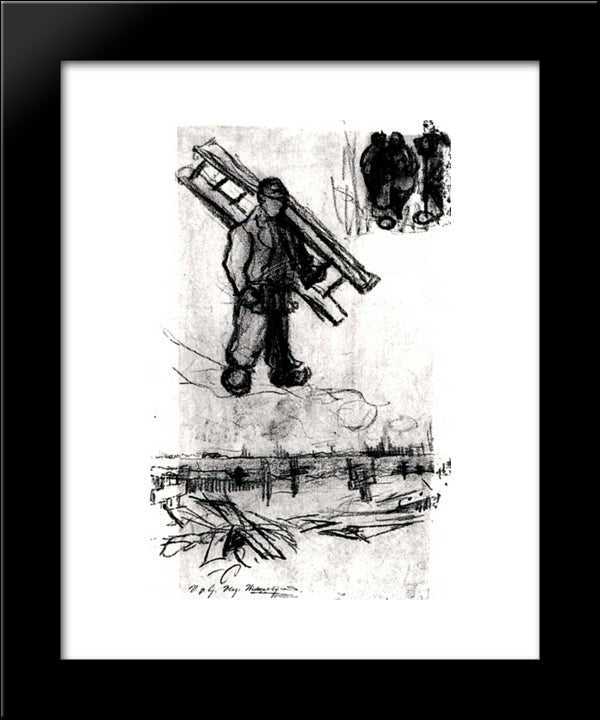 Sketches Of A Man With A Ladder, Other Figures, And A Cemetery 20x24 Black Modern Wood Framed Art Print Poster by Van Gogh, Vincent