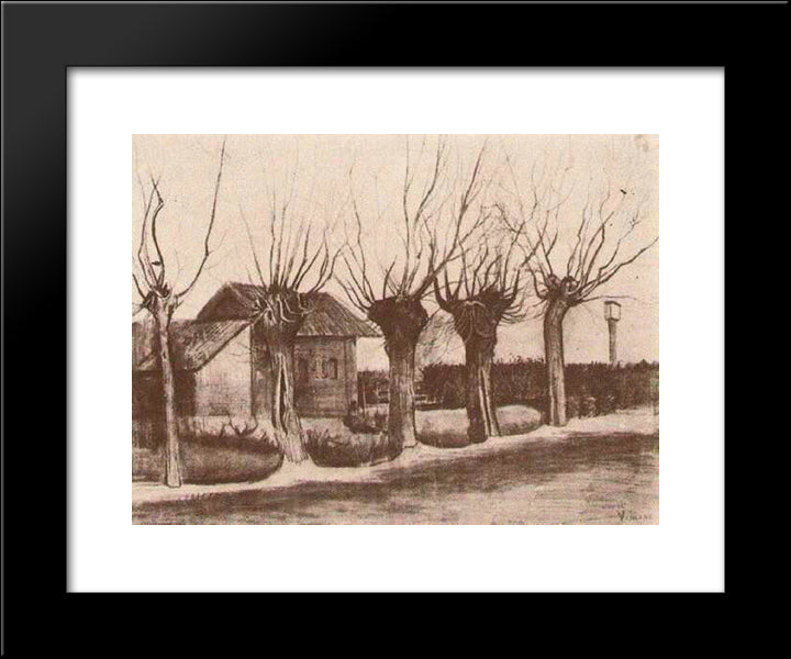 Small House On A Road With Pollard Willows 20x24 Black Modern Wood Framed Art Print Poster by Van Gogh, Vincent
