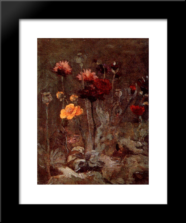 Still Life With Scabiosa And Ranunculus 20x24 Black Modern Wood Framed Art Print Poster by Van Gogh, Vincent
