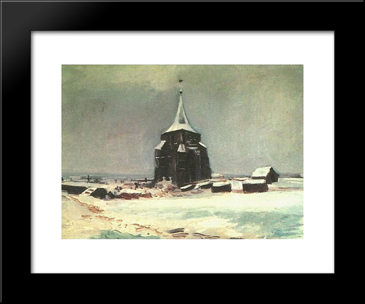 The Old Cemetery Tower At Nuenen In The Snow 20x24 Black Modern Wood Framed Art Print Poster by Van Gogh, Vincent