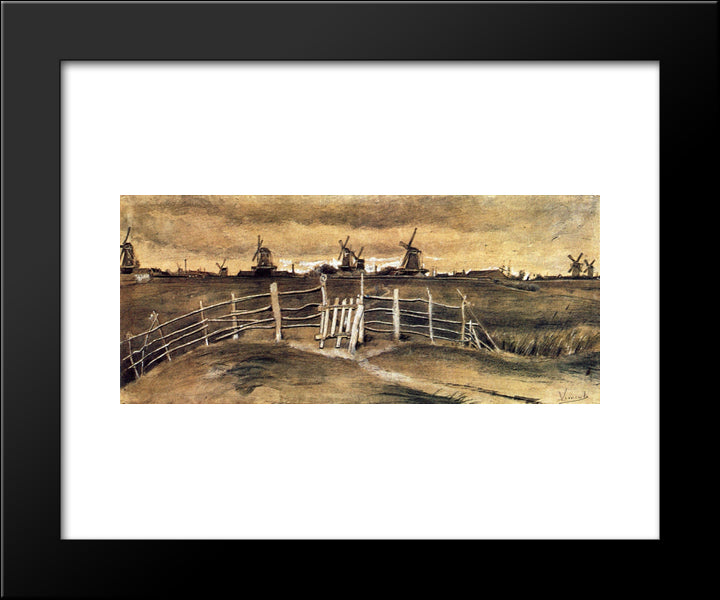 Windmils At Dordrecht 20x24 Black Modern Wood Framed Art Print Poster by Van Gogh, Vincent