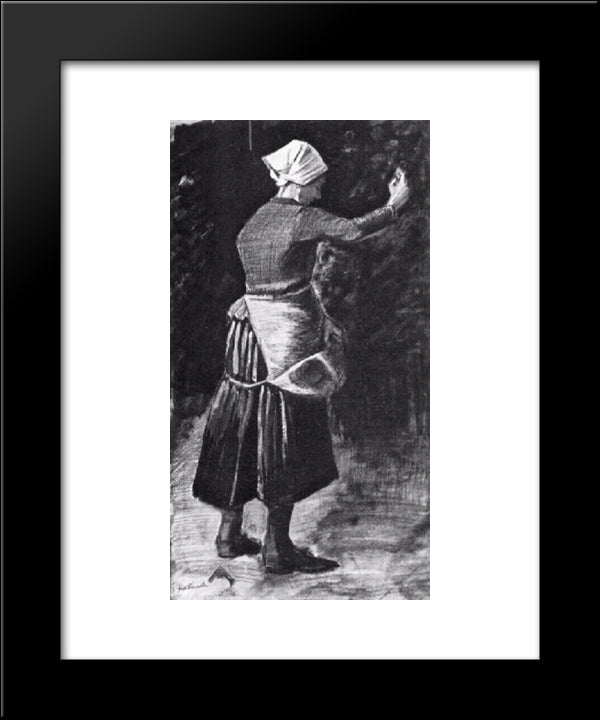 Woman Feeding Chickens 20x24 Black Modern Wood Framed Art Print Poster by Van Gogh, Vincent
