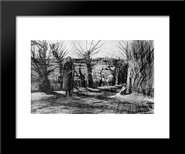 Woman On A Road With Pollard Willows 20x24 Black Modern Wood Framed Art Print Poster by Van Gogh, Vincent