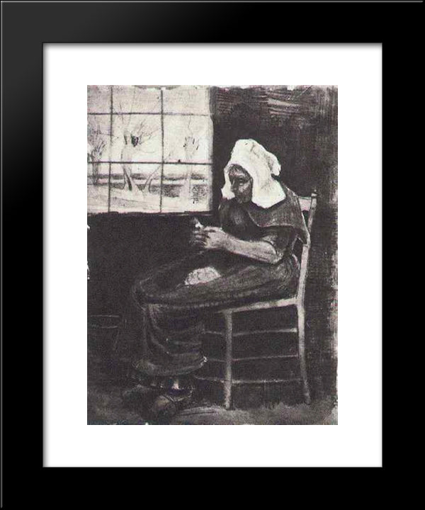 Woman Peeling Potatoes Near A Window 20x24 Black Modern Wood Framed Art Print Poster by Van Gogh, Vincent