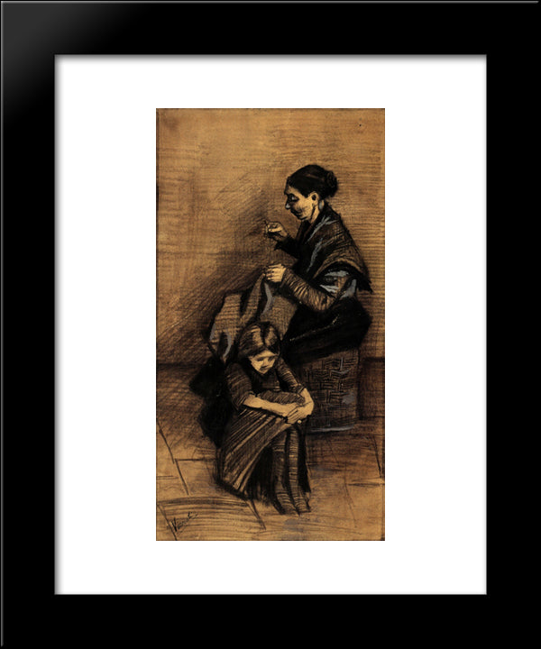 Woman Sewing, With A Girl 20x24 Black Modern Wood Framed Art Print Poster by Van Gogh, Vincent