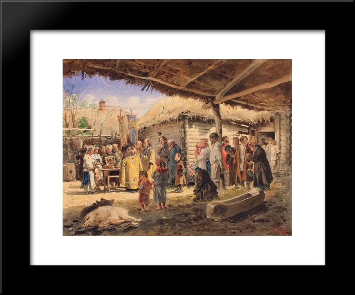 Prayer Service At The Farm In Ukraine 20x24 Black Modern Wood Framed Art Print Poster by Makovsky, Vladimir