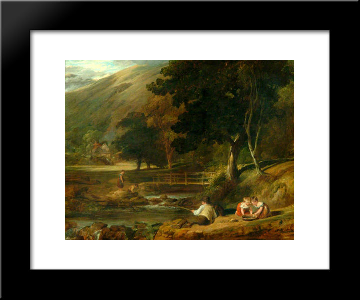 Borrowdale, Cumberland, With Children Playing By The Banks Of A Brook 20x24 Black Modern Wood Framed Art Print Poster by Collins, William